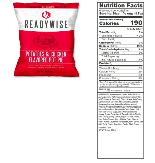 - 1 pouch of Potatoes & Chicken Flavored Pot Pie (6 total servings)