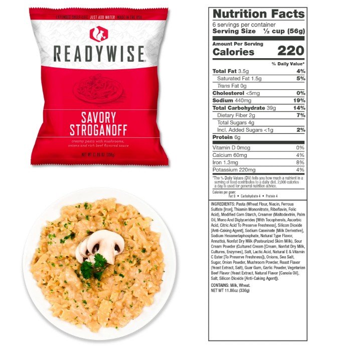- 1 pouch of Savory Stroganoff (6 total servings)